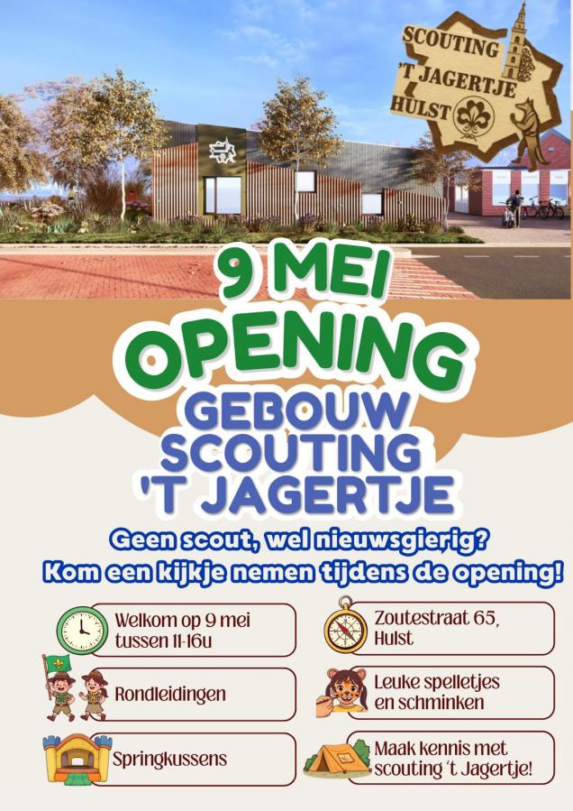 Op 9 mei openen we op scouting 't Jagertje officieel het nieuwe gebouw! Hierbij zetten we ook de deur open voor iedereen die geïnteresseerd is om te komen kijken.